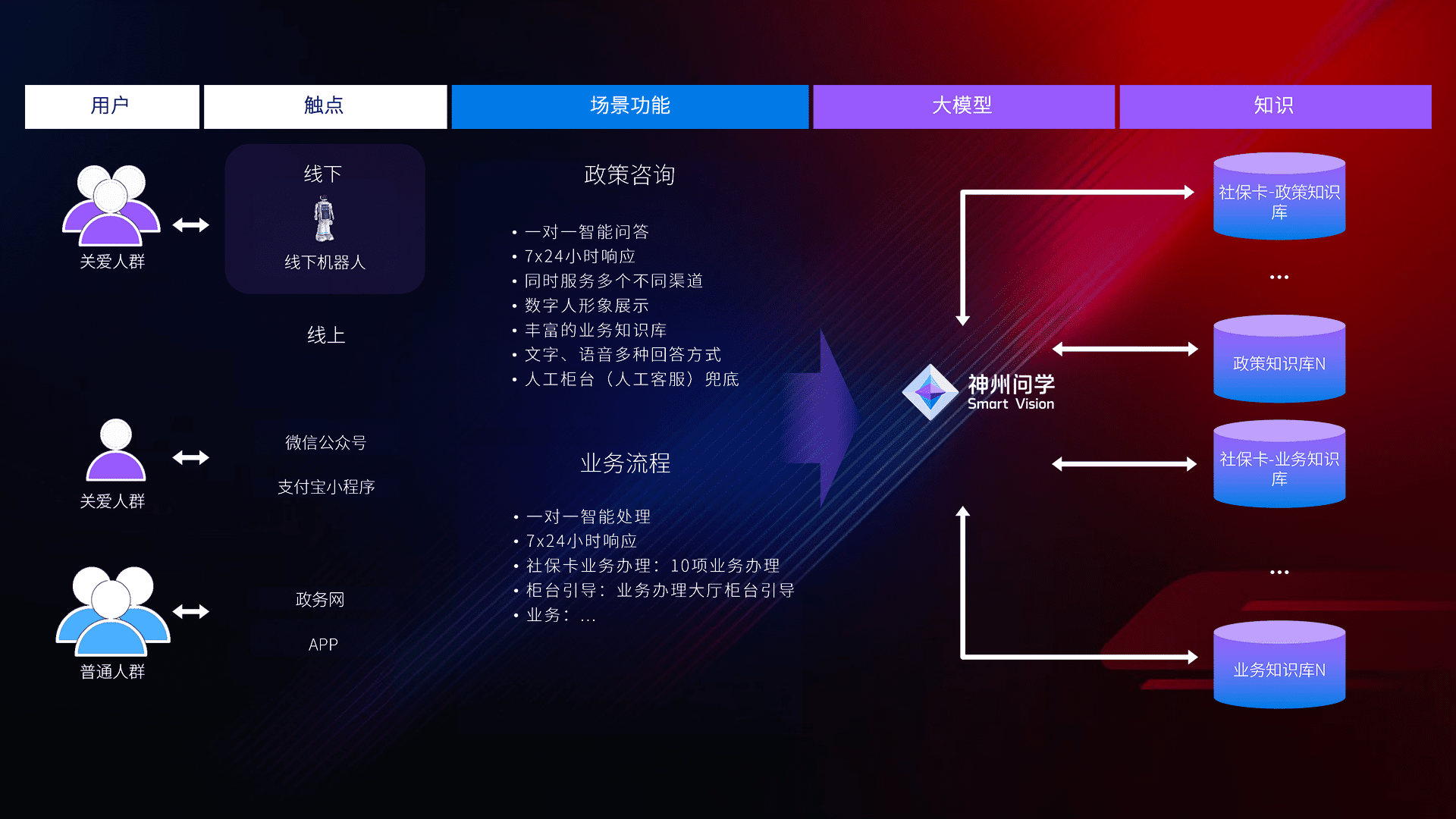 在服务大厅部署客服机器人,,,,在线上应用和小程序配置客服数字人,,,,724小时为群众解答常规问题,,客服机器人无法处理的,,,,转现场人工处理。。。