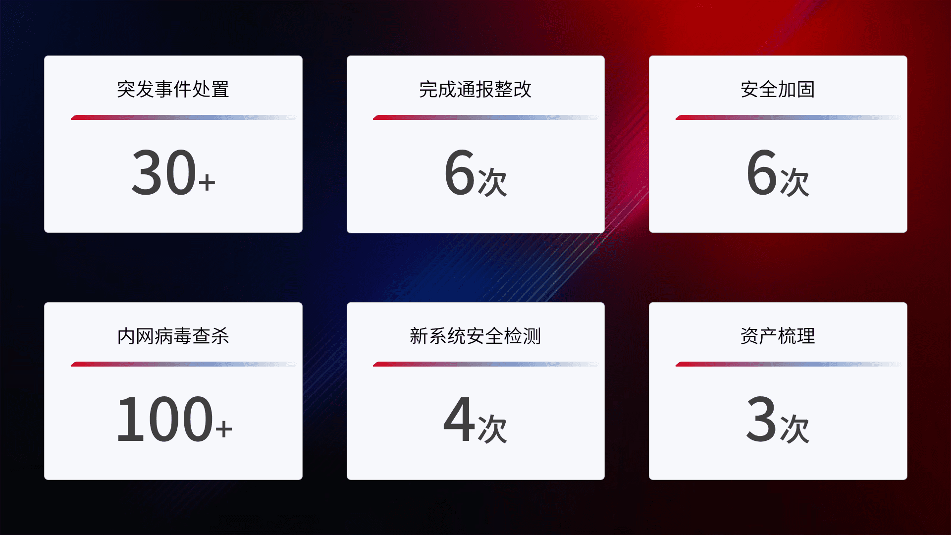 网络安全加固与风险管理:通过技术加固手段,,,,如加强区域隔离,,缩减攻击内网横向移动的范围;优化现有网络安全管理制度,,降低网络威胁暴露面,,,减少被黑客攻击的可能性。。。